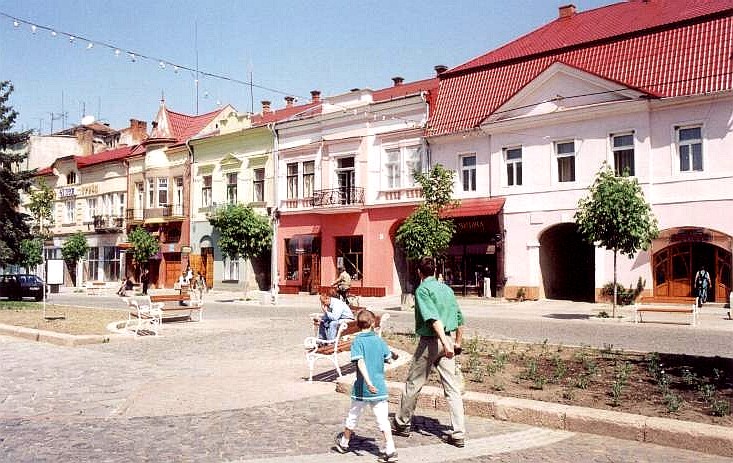 Ciril és Metód szobra a munkácsi szépen felújított főutcán