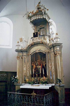 hozzá a templomhoz. A karzaton a kalaznói mester újszövetségi jelenetsorát csodálhatjuk meg. Az oltárkép